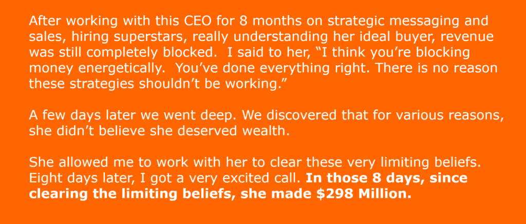 As you energetically connect to the evidence of the financial wellbeing, your beliefs naturally begin to change. As your beliefs morph into those of financial success, the beliefs around scarcity diminish, causing you to energetically connect with more evidence of prosperity. More thoughts and talk of prosperity bring more evidence; more evidence enhances the belief, which brings more evidence. And soon that evidence begins to flow into your own pockets.